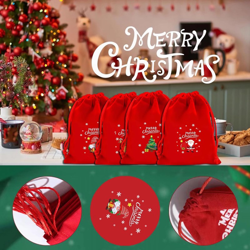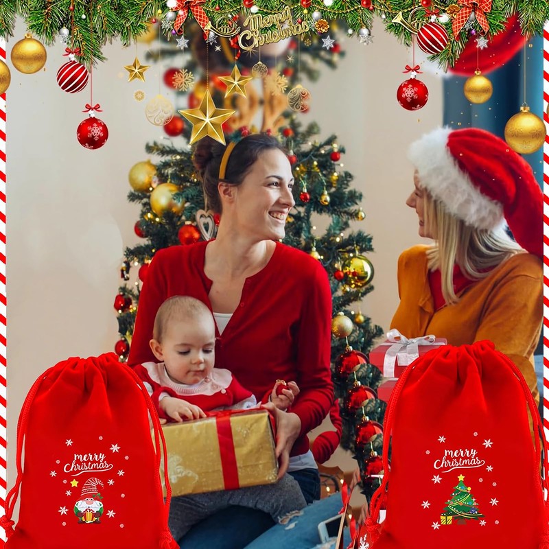 - Premium Red Velvet Material: The red Christmas bag is made of short velvet materials, which are soft and practical. The red Xmas bag will not fade easily, keeping bright for a long time. Compared to other plastic materials, our velvet material is a great choice. Practical and bright Christmas red. Joyful Celebration.