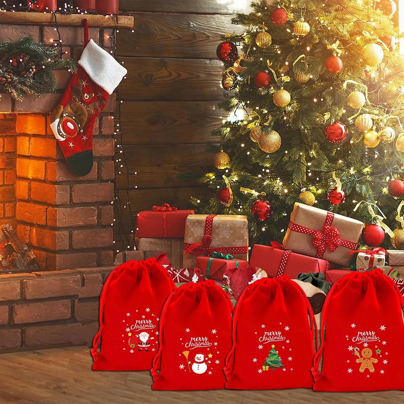 - Wide Use: Our Christmas drawstring bags are mainly suitable for Christmas presents packaging and Christmas decorations (such as decorations for Christmas trees, Christmas parties, etc.). In addition, these bags can also be applied as party items, home decorations, daily item storage, and holiday presents.