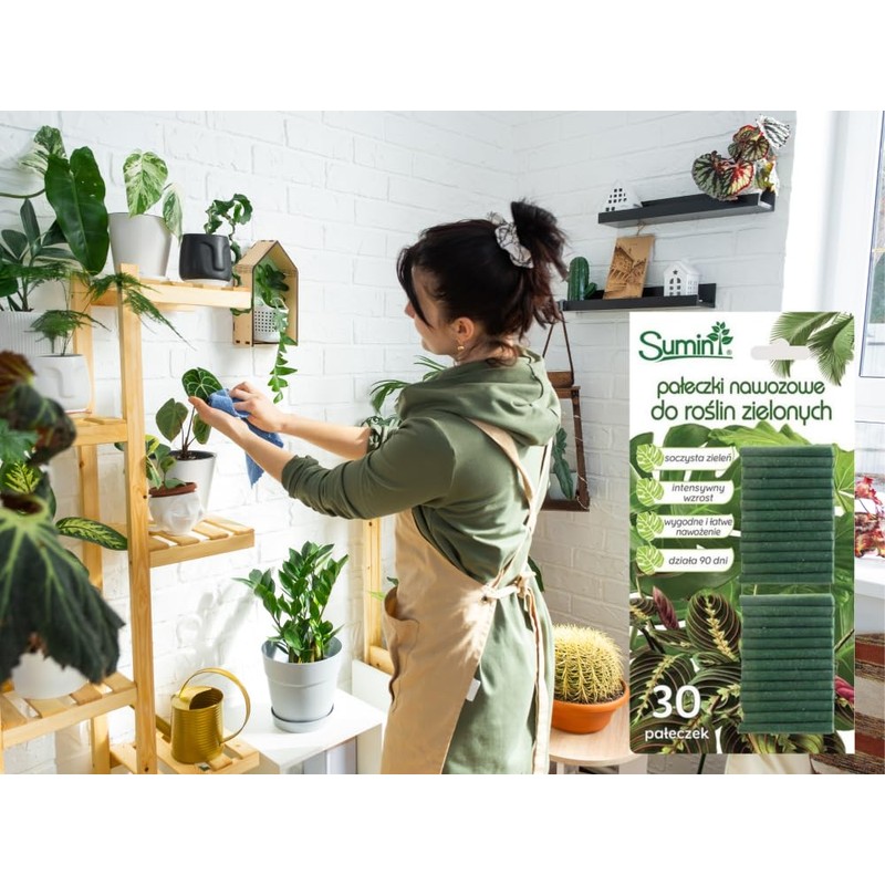 Sumin Grünpflanzen- und Palmen Düngestäbchen - 30 Stück - Universaldünger - Düngestäbchen für Grünpflanzen, Zimmerpflanzen und Balkonpflanzen - Langzeitdünger - 3 Monate Düngekraft