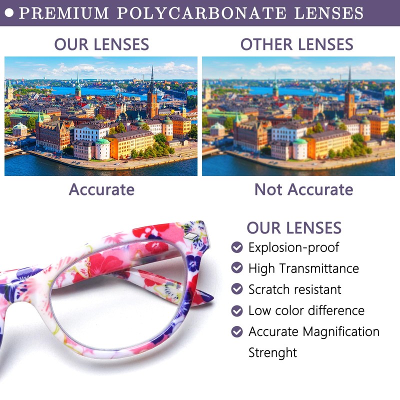 - GREAT VALUE OF 5 PACK WOMENS CAT EYE READERS -- With the convenient set of 5 pairs of cat eye reading glasses, keep a pair at your desk, in your bag and your favorite reading spots.You can have a clear visual experience anytime, anywhere, and avoid forgetting the glasses. Excellent gifts for women.