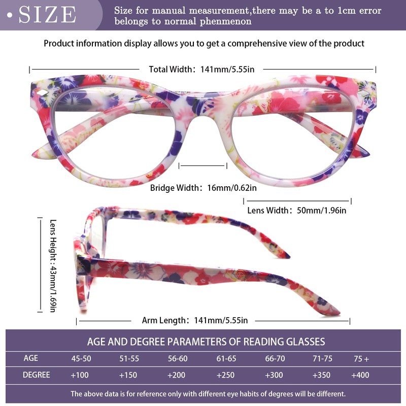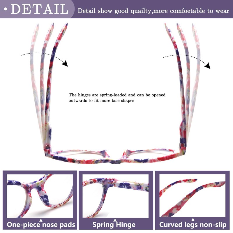 - FASHION CAT EYE DESIGN --Stylish ladies cat eye reading glasses specially designed for women's eye contour.Suitable for any face shape.Bright patterns with unique frames bring a special sense of fashion, it can be worn in a variety of occasions, make you stand out from the crowd.Also suitable for people of different ages.
