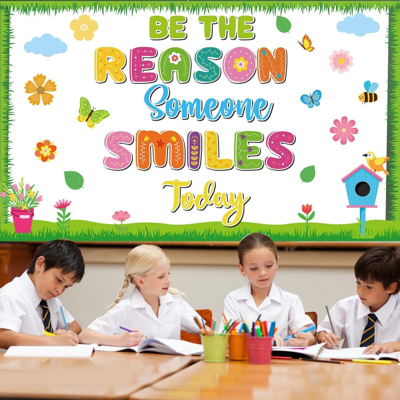 - Package includes: The back to school theme flower bulletin board set includes 16 “Be The Reason Someone Smiles Today” letter title, 22 classroom bulletin board cutouts, 12 bulletin board border, and 4 sheets of adhesive dots. Use the motivational bulletin board to easily decorate your classroom.