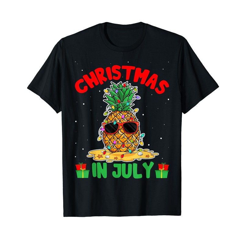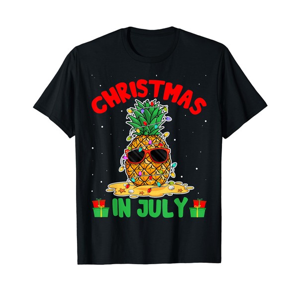 - This funny Christmas in July pineapple palm tree lights t-shirt is a perfect gift idea & present for beach lover men, women, kids, boys, and girls. Grab your Santa hat and Xmas lights and enjoy Christmas at the beach!