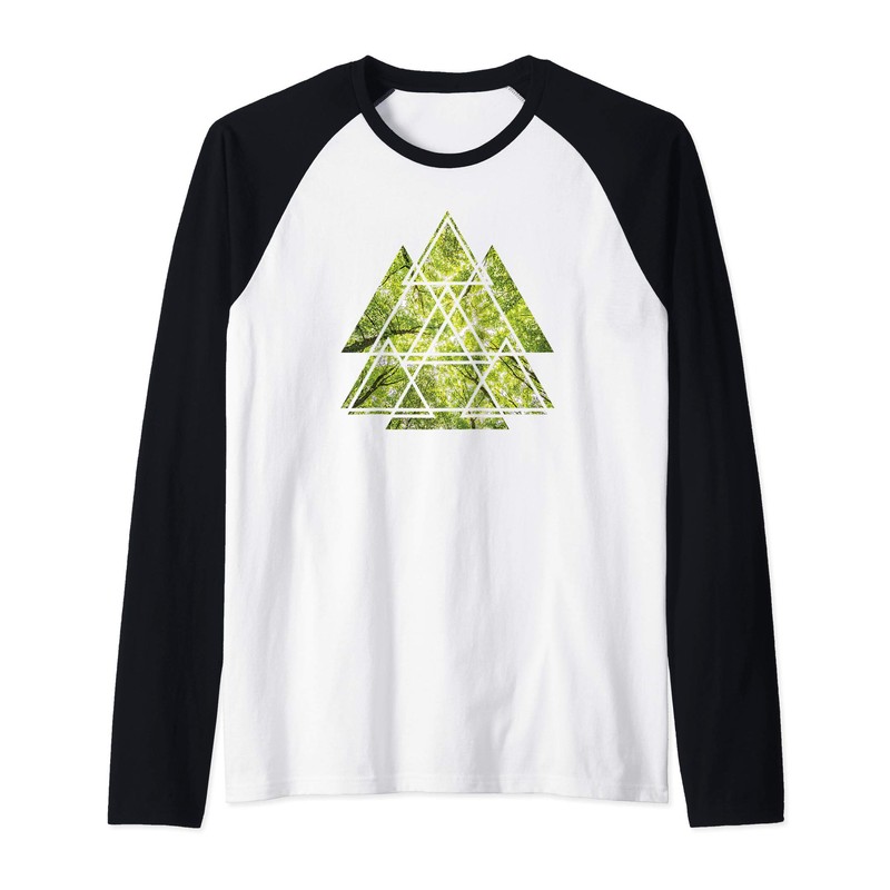 Summer Forest Trees Geometric Triangles | Tree Surgeon Gift Raglan Baseball Tee