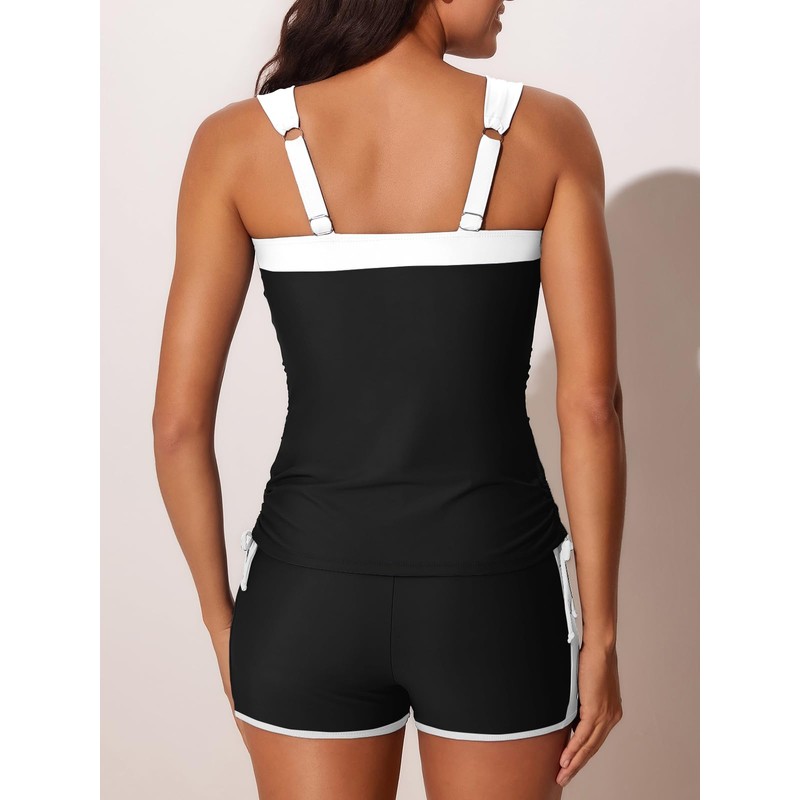 - 【SPORTY TANKINI WITH SHORTS】The 2025 trendy swimsuit showcases a classic color-block design for a sporty, fashionable vibe.The high-waisted shorts with side pockets not only offer excellent coverage but also provide convenient storage for small items, blending style and functionality.
