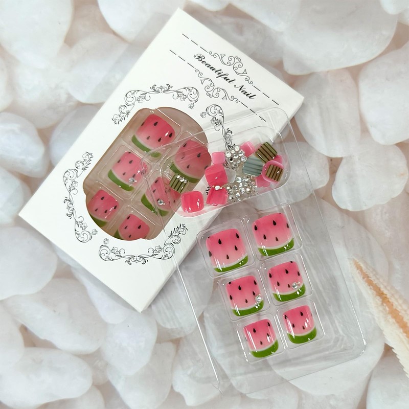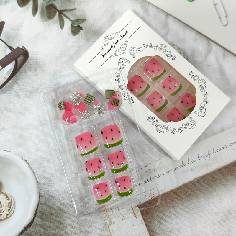 - Easy to Use: Watermelon design press on toe nails are a perfect alternative to nail polish, no need to wait for drying, only a few minutes to get the same professional effects as nail salons