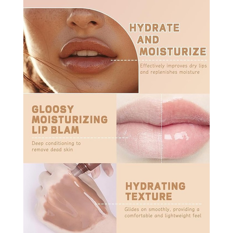 • 【Lip Butter Balm】Our lip oil gloss is high-intensity moisturizing, hydrating texture, long lasting and refreshing, nourishing and moisturizing, glides on smoothly, providing a comfortable and lightweight feel, provides beneficial moisture to lips with glowy effect.