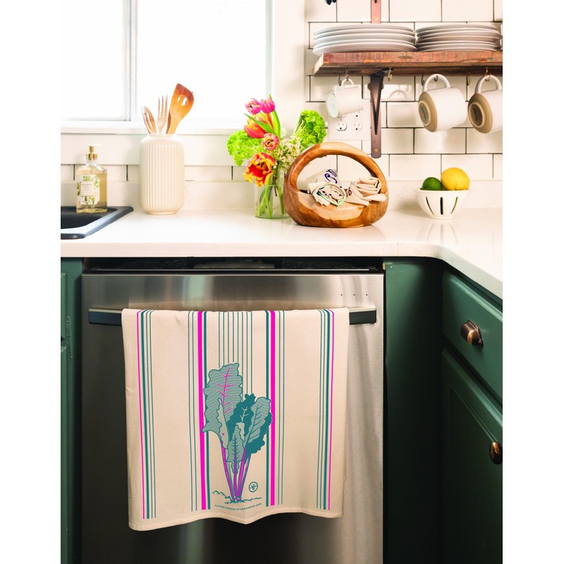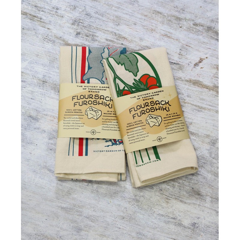 Swiss chard and Kale are favorite garden cultivars because they're relatively easy and versatile—just like these beautiful new printed floursack towels. Today, the useful and absorbent American floursack meets furoshiki—the Japanese art of using cloth to wrap and carry personal items. For gift-giving, for picnicking, for baking, for drying, even cleaning—there’s a hundred uses for a durable Floursack Furoshiki. The ideal life of a Floursack Furoshiki begins as a gift! A common practice in Japan, wrapping gifts in reusable cloth is both beautiful and environmentally-friendly. Some recipients may even find this wrapping to be the best gift, as the Furoshiki becomes a handy kitchen towel perfect for the dishes, baking, cleanup, and more.