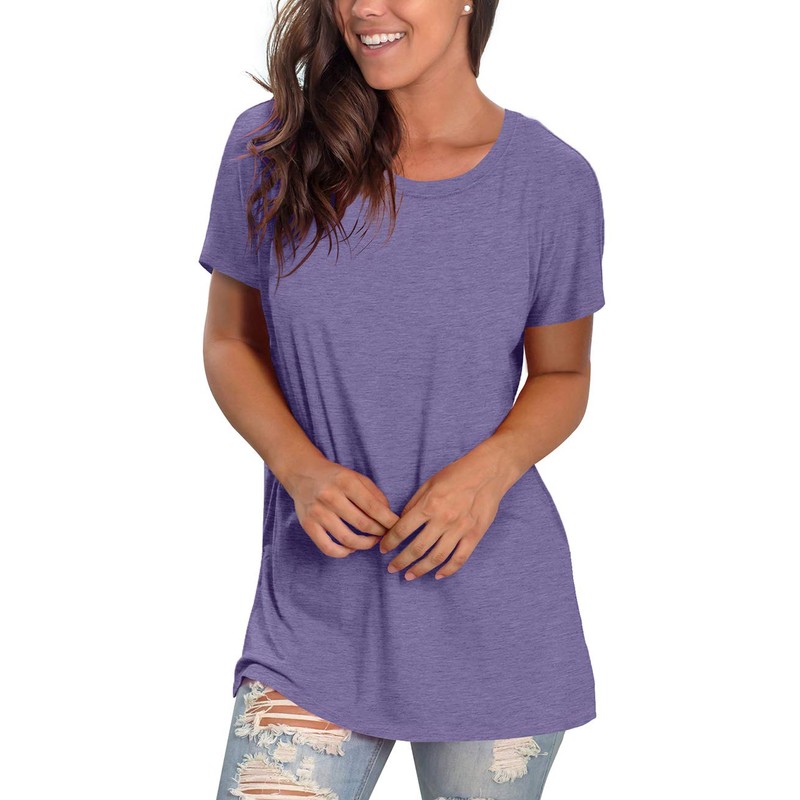 Summer Tops for Women 2023 Short Sleeve Basic T Shirts Loose Casual Tees Purple XL