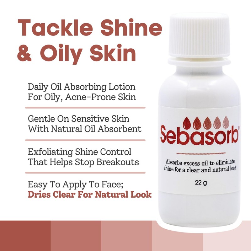 Sebasorb Oil Absorbing Lotion - Matte Daily Moisturizer For Oily Skin - Natural Oil Control Face Cream With 2% Salicylic Acid & Attapulgite - Absorbs Oils, Reduces Shine & Exfoliates Acne Prone Skin