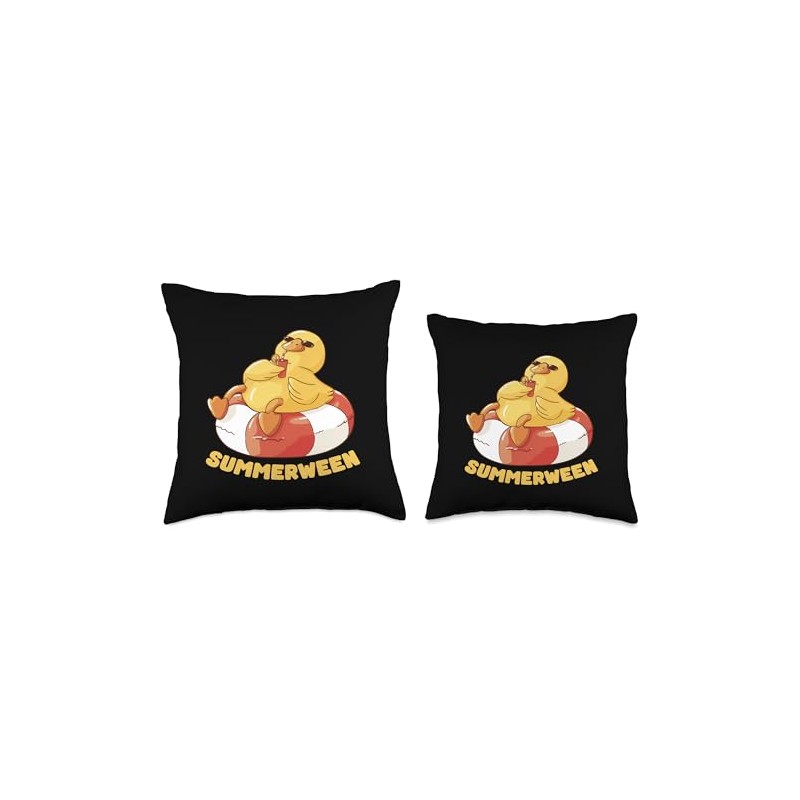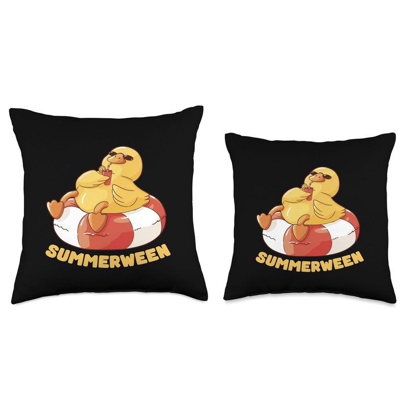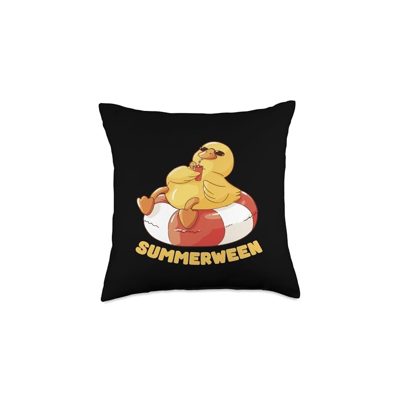 Summerween Vibes Rubber Duck Pool Float Summer Halloween Throw Pillow