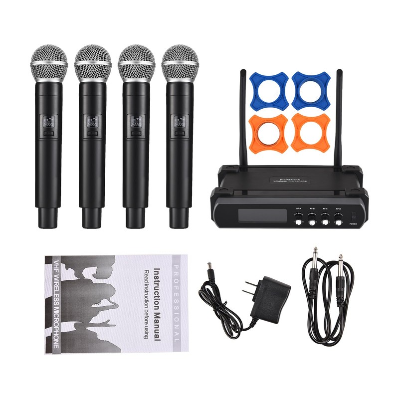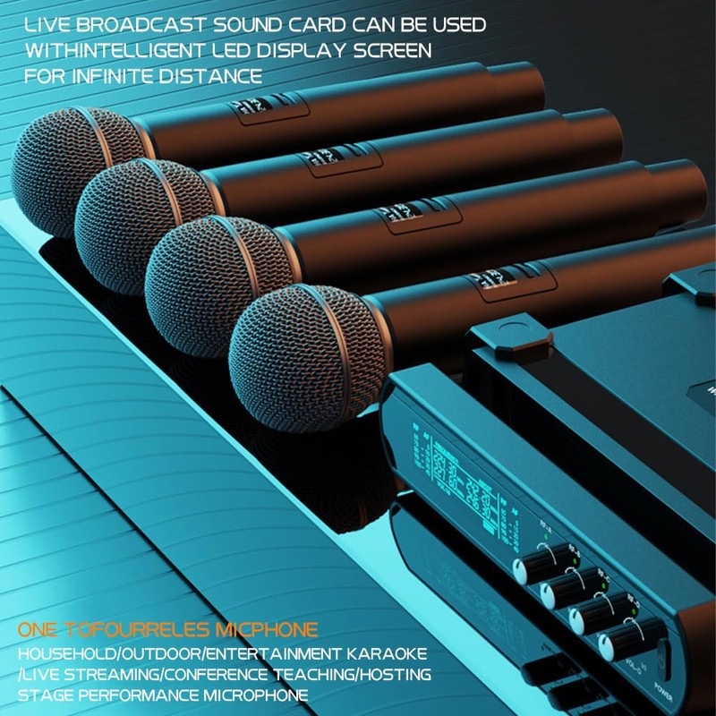 • 【High-Quality Cordless Microphone Set】: This 2.4G wireless handheld microphone comes with four microphones and a receiver, providing professional-grade sound for various applications such as live performances, karaoke, outdoor events, and conferences.
