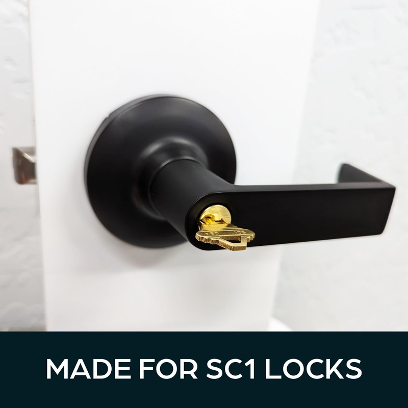 - DURABLE MATERIAL CONSTRUCTION: These blank keys are made from strong brass that lasts a long time. These Schlage SC1 keys are carefully made to be durable and withstand regular use without wearing out. With smooth edges and a solid build, they work reliably every time you use them. Plus they look great and give you confidence that your keys are secure.