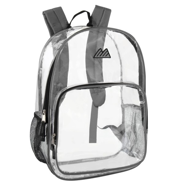 Summit Ridge Waterproof Clear Backpack with Water Bottle Holder Stadium Approved Heavy Duty Clear See Through Backpack (Grey)
