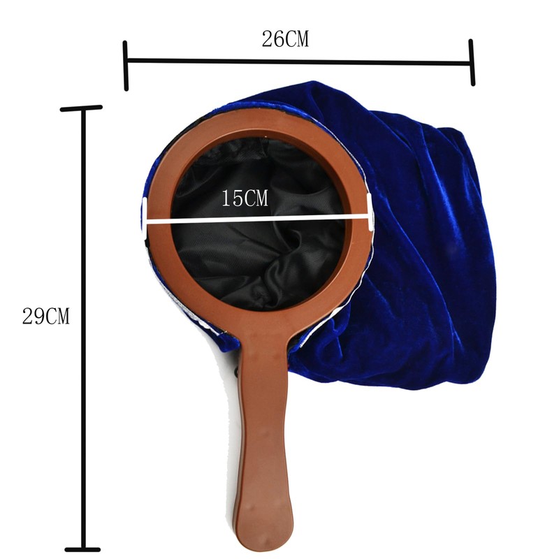 - Material: Velvet, Size: Chief: 29 cm, Handle length: 14 cm, The circle diameter: 15cm, Diameter:12 cm.