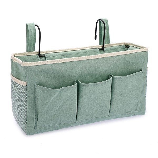 SUMTree Hanging Bedside Organiser, 6 Pockets, Waterproof Bedside Storage Bag, Bed Basket, Magic Tape and Hooks for Magazines, Phone, Pens, Remote Control (Green)