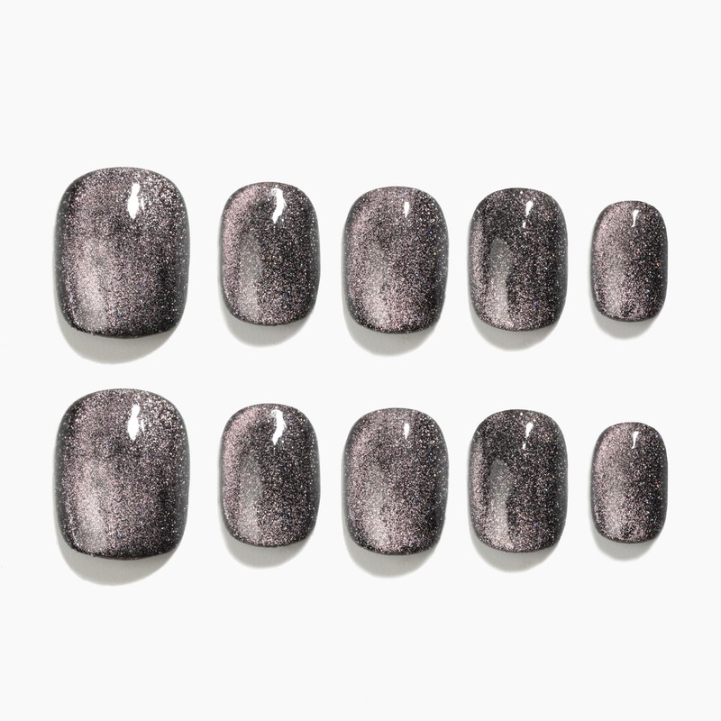 Sun&Beam Nails Handmade Press On Short Round with Black Pink Cat Eye Design Charm Cute False Nail Tips 10 Pcs (#108 L)