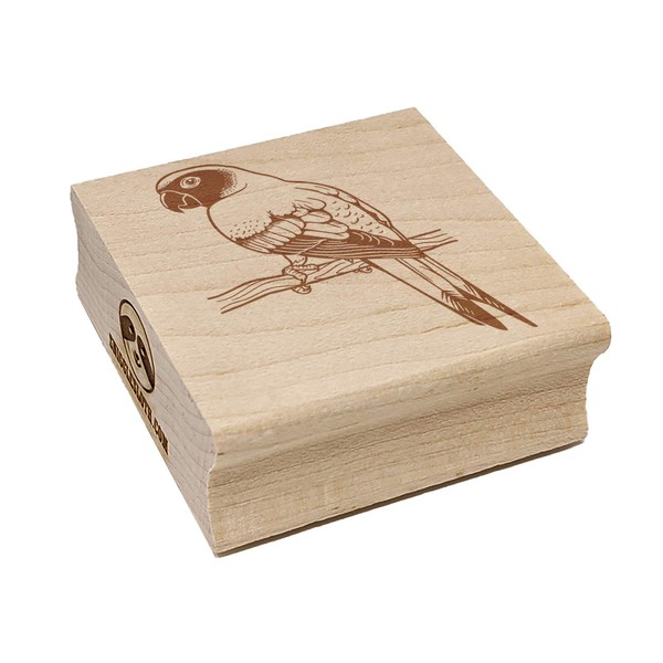 Sun Conure Parrot on a Branch Square Rubber Stamp for Stamping Crafting - 1.75in Medium