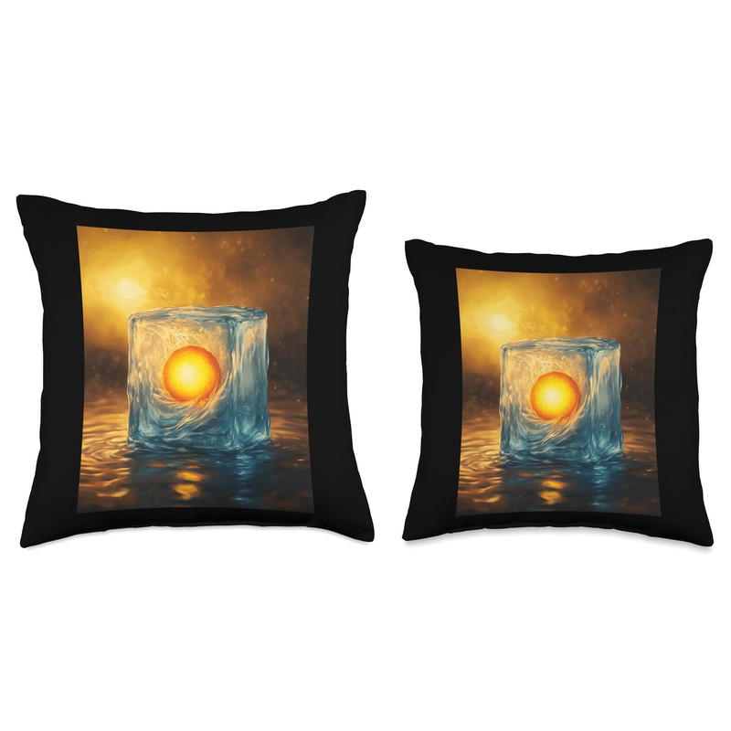 Sun Encased In Ice Cube Surreal Nature Art Throw Pillow