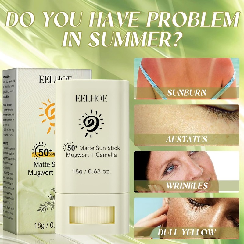 Sun Protection Stick, Face Sun Cream SPF 50+, Korean Sunscreen Stick Mugwort, Matte Sun Stick, Waterproof, Non-Greasy, Natural Tattoo Care Cream, Daily and Subsequent