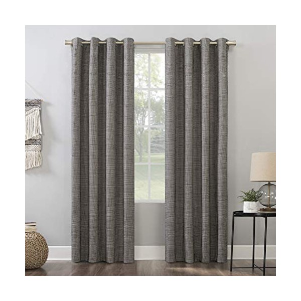 Sun Zero 56583 Brooks Burlap Weave Thermal Extreme 100% Blackout Grommet Curtain Panel, 52" x 84", Taupe/Cocoa Brown