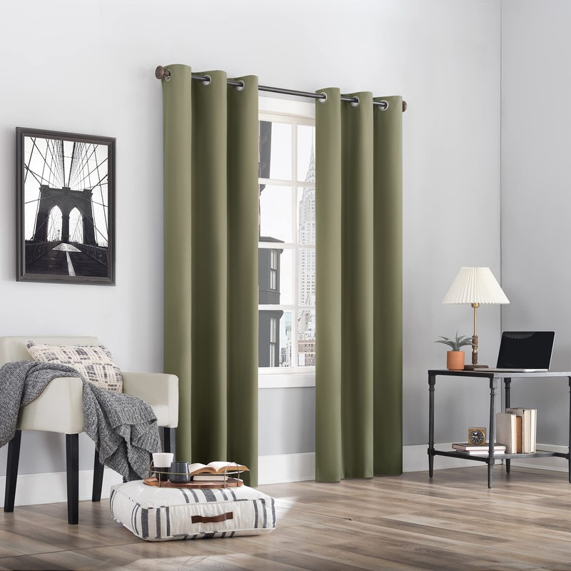 Sun Zero Cyrus Thermal 100% Blackout Grommet Curtain Panel Pair Olive Green 40" x 84"