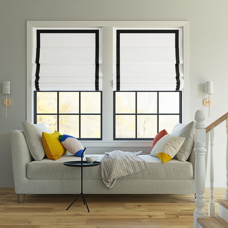 Sun Zero Denna Black Ribbon Border Stripe 100% Blackout Cordless Roman Shade, 31" x 64", Black/White