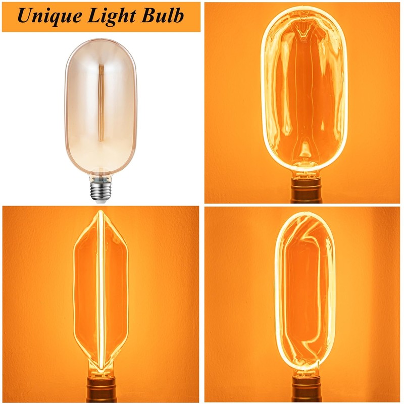 • Unique Light Bulb: Irregular shape, amber thick glass, the led filament circles the edge of the bulb, cool looking with a nice warm glow