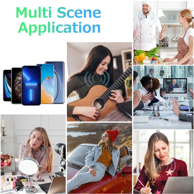 - 【Plug and Play】The wireless microphone for the Phone that requires no adapters, Bluetooth, or applications. Just insert the receiver into your device and turn on the portable microphone, these two components will automatically pair, it is very perfect for live streaming, video recording, interviews, vlogs and so on. And this wireless lapel microphone uses real-time auto-sync technology, without any delay in transmission, which extremely reduces the video post-editing.