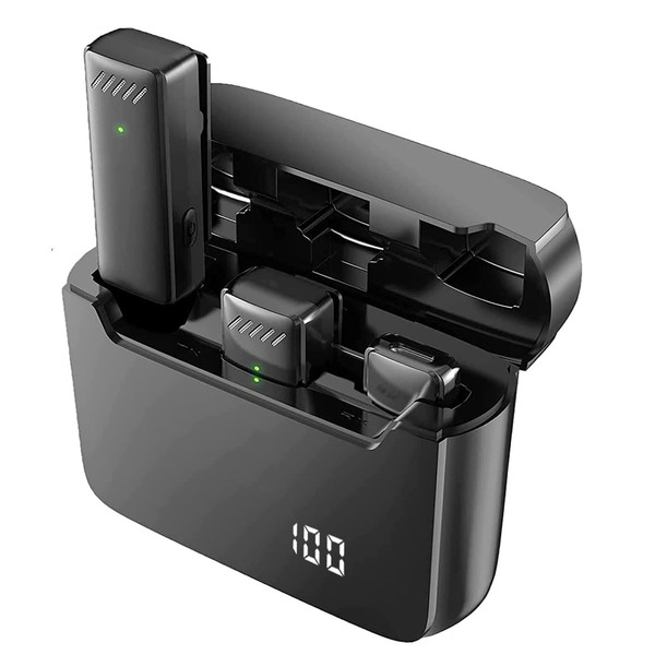 The wireless lapel mic with charging case is for Phone and video recording. Two Packs of mics allow a team worker to get involved in a video creating together. Or one working, the other for backup, which give double working time. It is an ideal microphone for vlogging, interview, and live straming. Suits for Bloggers, Journalists, Teachers and Office people ect.