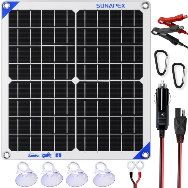 SUNAPEX Solar Battery Charger Maintainer, 20W 12V Portable Waterproof Solar Panel