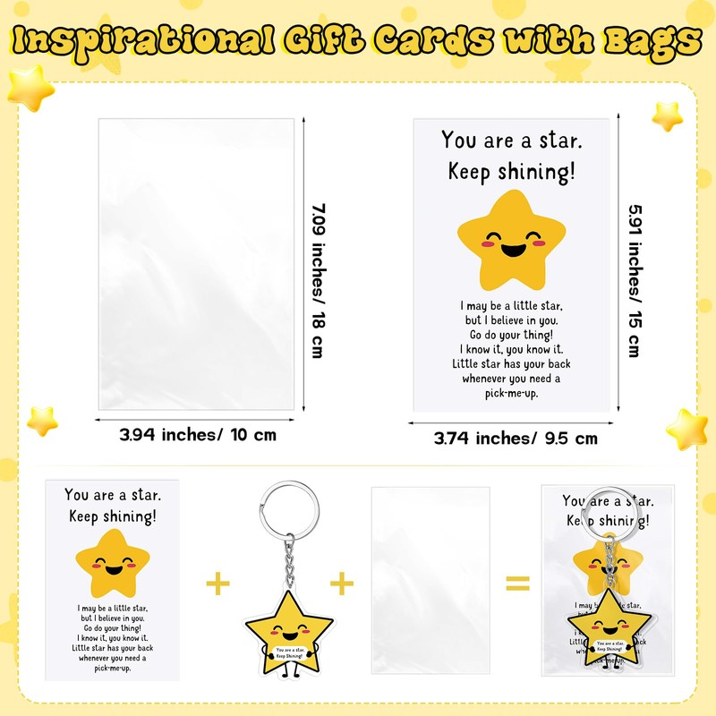 - Complete Back-to-school Gift Set: this student back-to-school gift set contains 40 star keychains, 40 motivational cards, and 40 opp bags, perfect for class teachers or parents to distribute at the beginning of the new semester; Each keychain and card combination not only makes students feel a warm welcome, but also becomes a small motivation in their learning journey