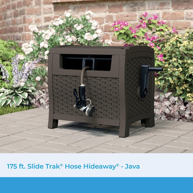 Suncast 175 ft. Wicker Style Resin Hose Hideaway with Hose Guide, Java, Mocha Brown