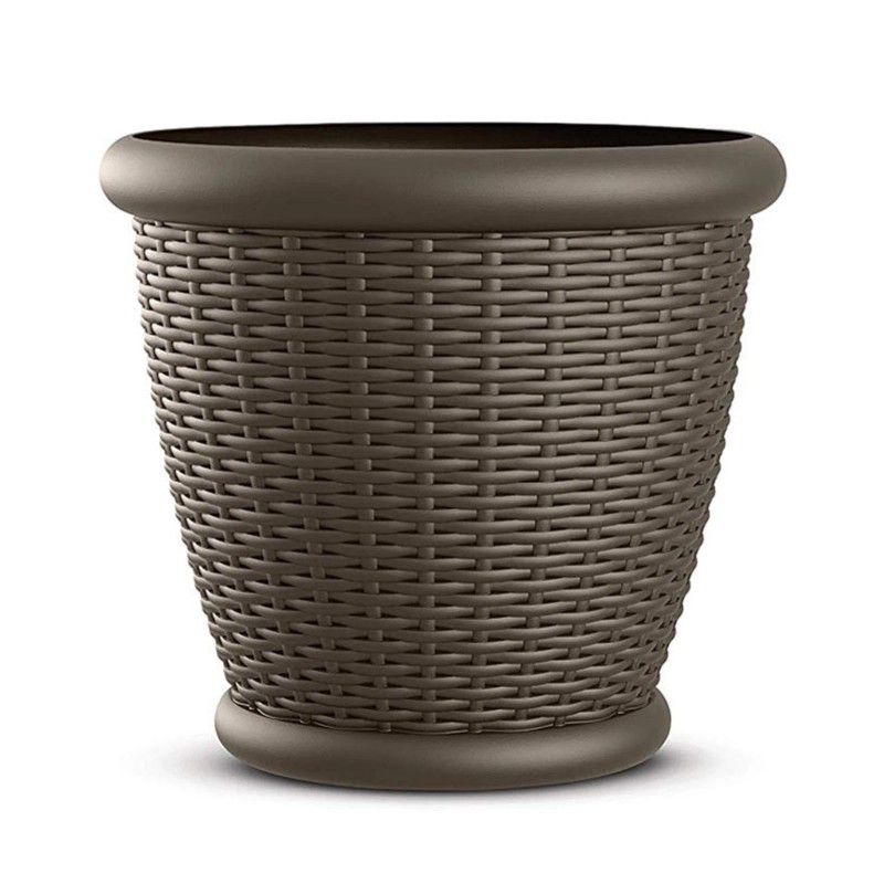 Suncast Willow 18" Diameter Decorative Wicker Patio Planter Pot, Java (2 Pack)