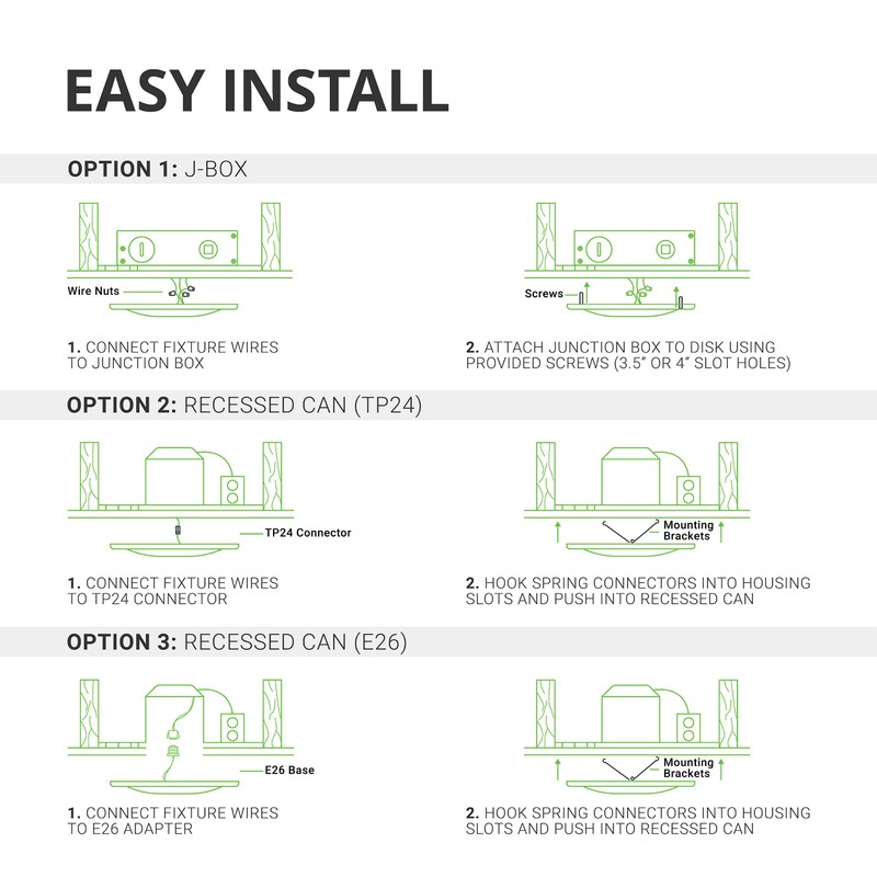 - SIMPLE INSTALL - Sunco's LED disk downlights can we direct wired to a 4"/6" junction box which means they do not need a can. Directly install to the ceiling for instant bright light in your kitchen, family room, bedroom, bathroom and common areas in your home or office.