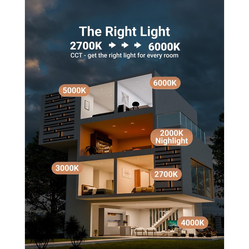 - 5-in-1 CCTs - Use the color temperature switch to tune the light to your preferred ambience (2700K, 3000K, 4000K, 5000K, 6000K).