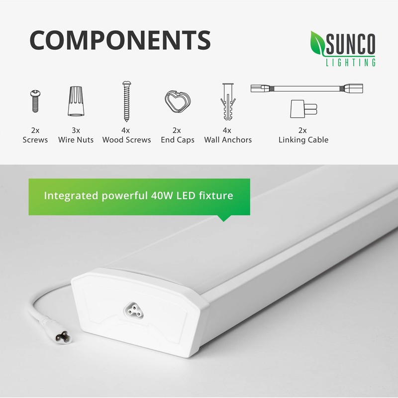 Sunco 2 Pack LED Wraparound Light Fixture 4FT, Garage Ceiling Lights, Linkable 40W=300W, 3500 LM, 5000K Daylight, Hardwired, Surface Mount, Workshop Utility Light ETL Energy Star