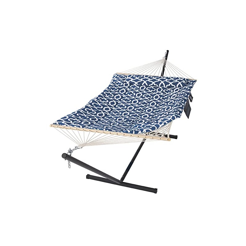 SUNCREAT Double Portable Hammock with Stand Included, 475 lbs Capactiy, Extra Large Two Person Hammock, Blue Pattern