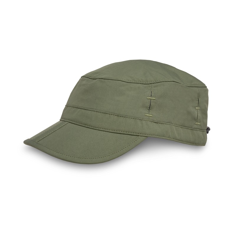 • Military cap (US Patent # D616,633); UPF50+; Clam shell brim; Ventilation function; Sunglass lock; Water repellent and stain resistant; Size adjustable: (M) 22.6 inches (57.5 cm); Weight: 2.6 oz (74 g); Material: 100% nylon