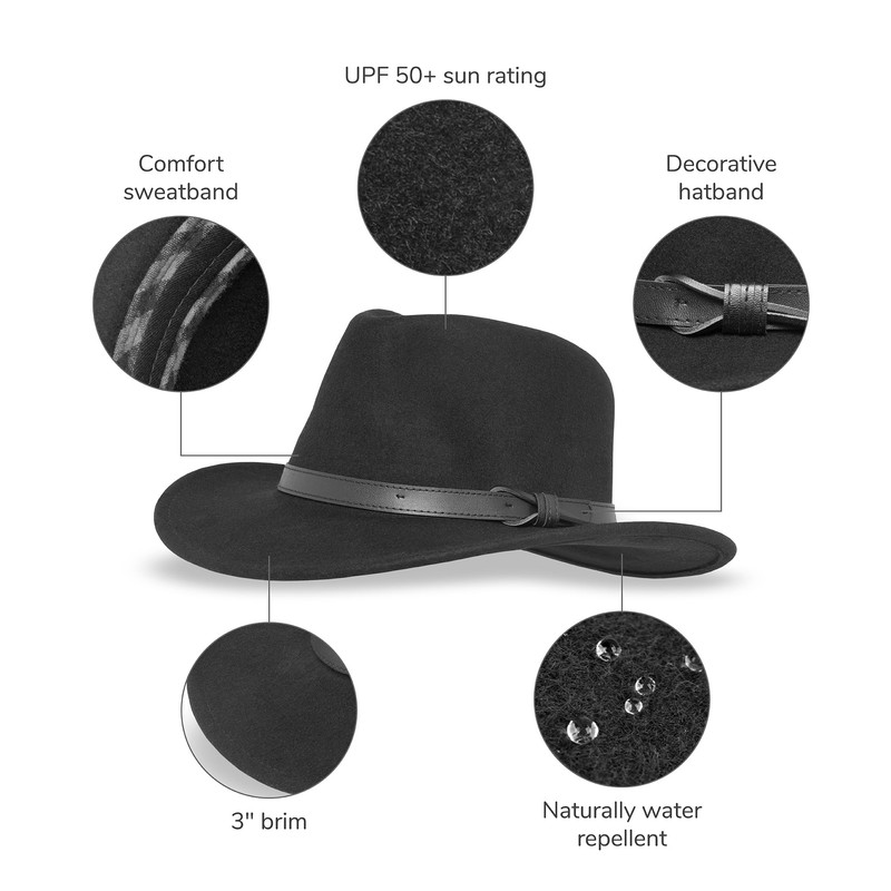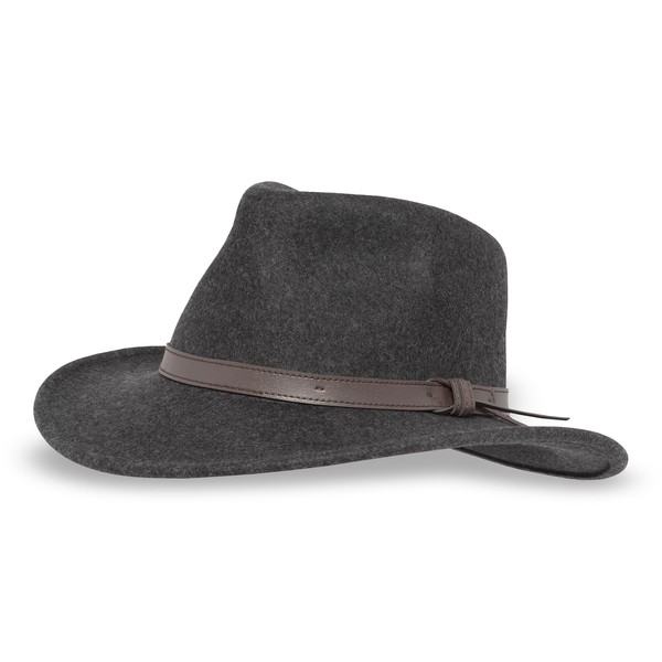 Sunday Afternoons Montana Hat, Men's Wool Felt Fedora, Cowboy Hat, UPF 50+ Sun Protection, 3" Western Style Brim, Leather Hatband, Stain Resistant, Heathered Dark Gray, Medium