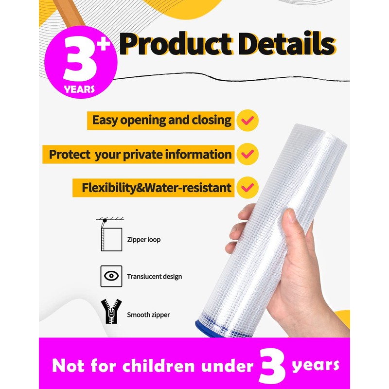 - Duraderas y portátiles: las bolsas con cierre SUNEE están hechas de material de vinilo grueso, resistente al agua, resistente a la humedad. Cada cierre de metal está equipada con un lazo de cuerda, que es fuerte y duradero. Se puede utilizar como un anillo colgante y listo para colgar.
