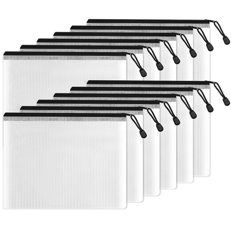 SUNEE Bolsa de malla de plástico con cierre de 6 x 9 pulgadas (negro, 12 paquetes), bolsa extragrande resistente al agua con cierre para suministros escolares de oficina, rompecabezas y juegos organizando almacenamiento