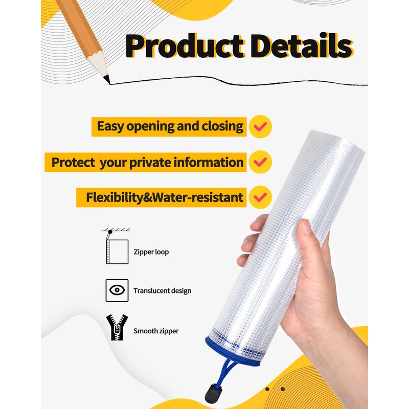 - Amplio uso para el almacenamiento: la bolsa transparente con cierre especialmente diseñada para las necesidades de almacenamiento de todos. Perfecto para almacenar papeles importantes, dispositivos, libros más pequeños y otros.
