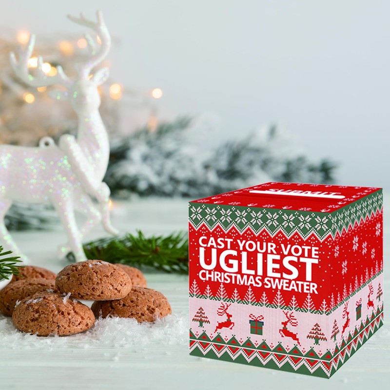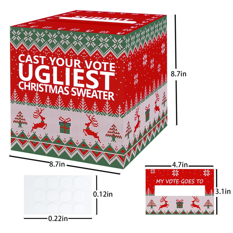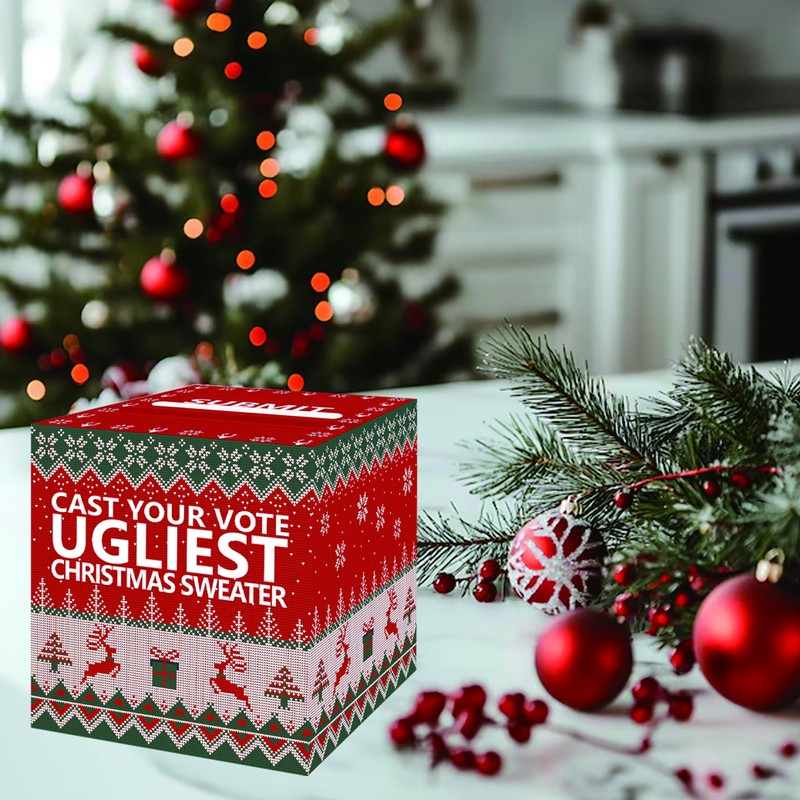 - Party Props: You can receive an ugly sweater ballot box made of cardboard 8.7x8.7x8.7 inches and 50 pack writable voting cards. Whether it is a family gathering, office party, or gathering among friends, it can add fun and interactivity to your event.