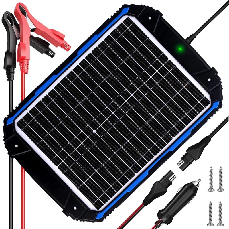 - 【 Wide Compatibility】It's not just a solar battery trickle charger, it's an advanced solar battery charger maintainer. A fully-automatic, worry-free smart solar battery charger for 12-volt sealed lead-acid car, automotive, marine, RV, powersport, boat, dump trailer, motorcycle, trolling motor, tractor, ATV and deep-cycle batteries, including flooded, gel, AGM, SLA and maintenance-free, plus lifepo4 lithium batteries.