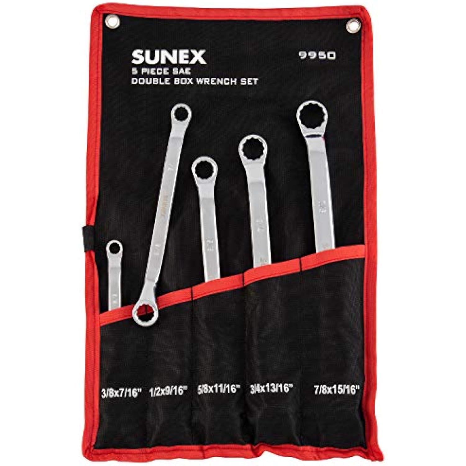 Product Description Sunex 9950 SAE Double Box Wrench Set, 3/8" x 7/16" - 7/8" x 15/16", Fully Polished, 5-Piece (Includes Roll-Case) From the Manufacturer This Sunex SAE 5 piece double box wrench set will give you years of usage. It comes with a lifetime warranty which backs the craftsmanship of this CR-MO alloy steel product. It will meet your needs and is at a great value.