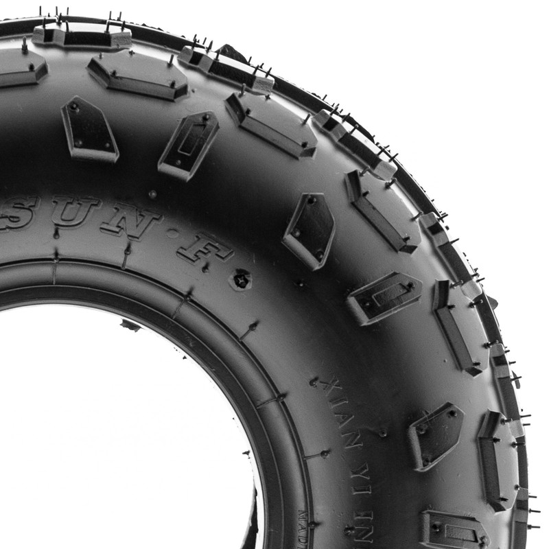 All-Terrain Versatility: Engineered to dominate various terrains, from mud to sand and rocky surfaces, the A015 tire delivers consistent and reliable performance for off-road enthusiasts seeking versatile traction.Durable 6 Ply Construction: Crafted with a sturdy 6-ply construction, the A015 tire is designed to withstand rugged conditions, effectively resisting punctures, cuts, and impacts, making it well-suited for demanding off-road adventures.Shoulder Traction Technology: Equipped with advanced shoulder traction technology, the A015 tire ensures exceptional grip during turns and challenging maneuvers on diverse terrains, enhancing off-road control.Broad Size Range: Available in sizes ranging from 13 to 19 inches, the SUNF A015 tire accommodates a wide range of ATV models and rider preferences, ensuring a customized fit for various vehicle setups and requirements.Size 1: 145/70-6