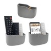 SUNFICON 3 Pack Adhesive Remote Control Holder Wall Mount Media Player Controller Holder Universal TV Remote Organizer Caddy Box Tray Hollow Bottom Phone Charging Home Office Desk Nightstand Gray