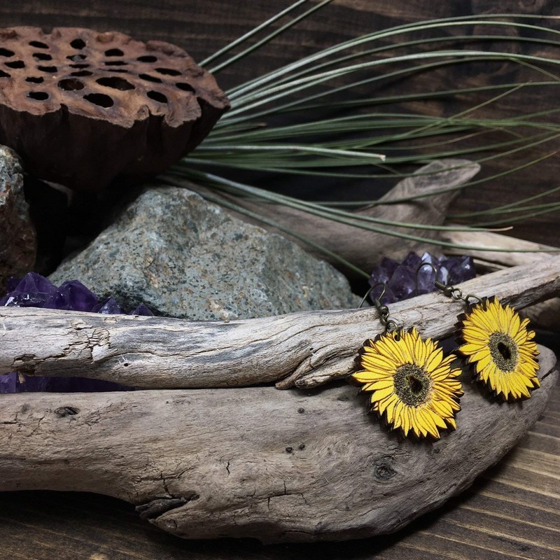 Sunflower Dangle Earrings | Lightweight Hand-Painted Wood Jewelry