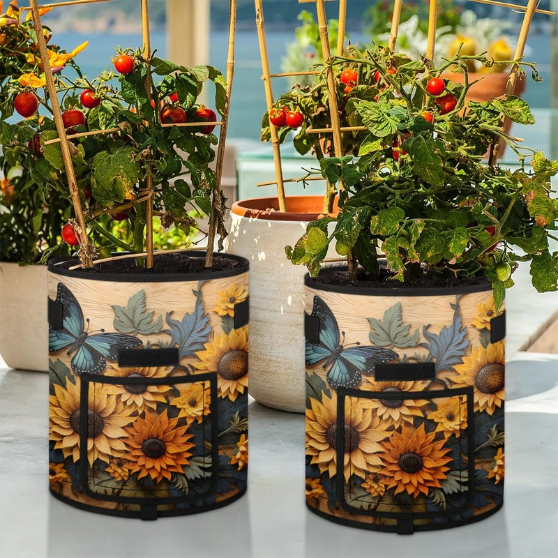 Sunflower Flowers Grow Bags 7 Gallon Thickened Nonwoven Plant Pot Vegetables Potato Fruit Plant Grow Bag with Handle Garden Plant Bag Outdoor 2 Pack